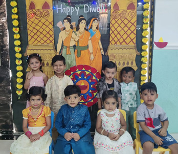 Themes are drawn from a child’s everyday world — family, animals, colors, nature, weather, and festivals — making early learning relatable and enjoyable. Activities like sand play, water exploration, singing, storytelling, and group games help children express themselves freely.